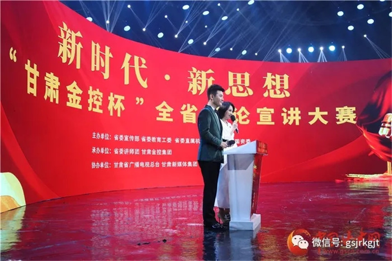 唱响主旋律,传播甘肃声音,党的创新理论“飞入寻常百姓家”。22日下午,由省委宣传部、省委教育工委、省委直属机关工委、省政府国资委主办,省委讲师团、甘肃金控集团承办,省广电总台、甘肃新媒体集团、中国甘肃网协办的新时代·新思想“甘肃金控杯”全省理论宣讲大赛决赛在省广电总台演播大厅举行,并进行了颁奖仪式。