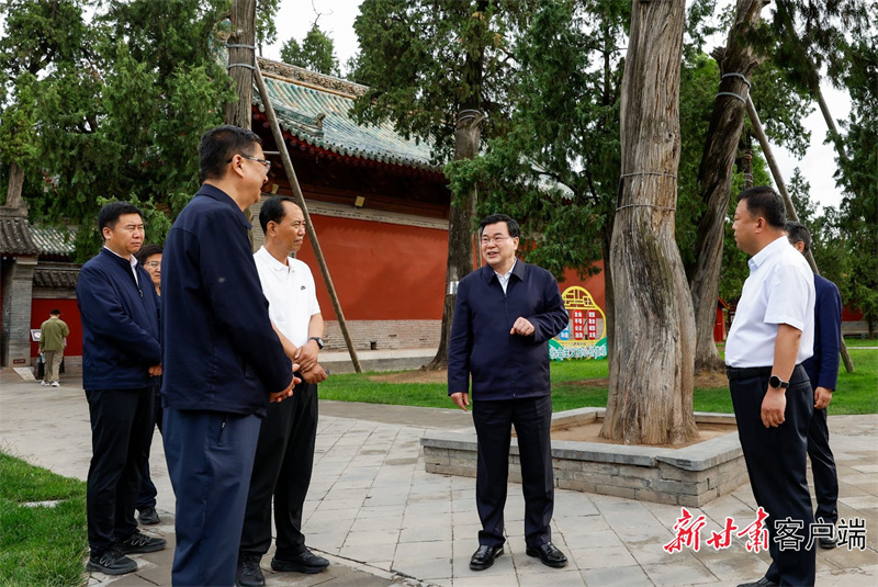 胡昌升强调,要深入贯彻落实习近平总书记关于将伏羲庙保护传承好的重要指示,着力提高文物保护管理水平,让宝贵文化遗产绽放时代光彩。要从严落实保护法规,悉心保护伏羲庙等古建筑、古树和城乡历史文脉,以最严格的制度、最严密的法治保护好文化遗产。要着力健全保护体系,全面建立伏羲庙等文物资源大数据库,推动文化遗产保护统一监管,深入开展文物行业安全生产攻坚三年行动,形成全面保护、系统保护、整体保护的工作体系。要加强文物科技创新,用好数字孪生、数字建模、物联感知、人工智能等新兴保护技术,提升文物数字化保护水平。要加强伏羲文化研究阐释,构建始祖文化传承保护与利用体系,高水平高质量举办公祭中华人文始祖伏羲大典。