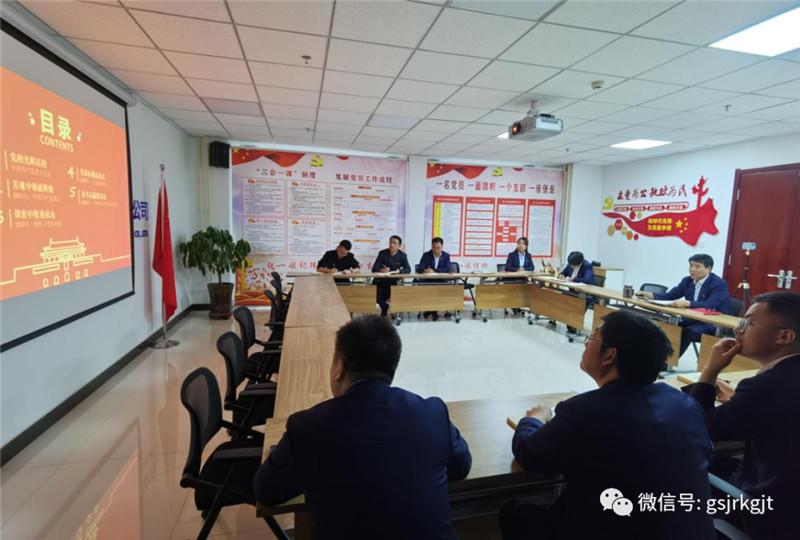 近日,金控定西担保开展“百年红色光影,奋进崭新征程——热烈庆祝中国共产党建党100周年”党史教育专题党课学习。党委书记石培龙同志传达集团相关文件精神,并讲授《热烈庆祝中国共产党建党100周年》主题党课。会议强调,全体党员干部要切实提高政治站位,深刻认识开展党史学习教育重要性,做到学史明理、学史增信、学史崇德、学史力行,以高度的责任感和使命感认真做好工作,立足本职,强化责任担当,切实把学习成果转化为加快推动工作落实的实干担当。