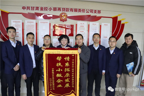近日,甘肃胜岩生态科技有限责任公司将一面印有“情系陇原发展,帮扶小微企业”的锦旗送到甘肃金控再贷款公司,对金控再贷款公司克服疫情影响,提供优质、高效、贴心的金融服务表示感谢。