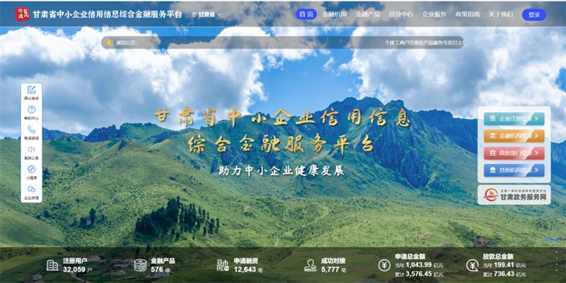 “搭建服务平台,释放企业信用数据价值,赋能金融机构更好地服务中小企业。”围绕推动甘肃社会信用体系建设,更好地满足甘肃中小企业融资需求,根据《甘肃省中小企业信用体系建设实施方案》要求,甘肃金控集团发起设立的甘肃征信股份有限公司应运而生,开启了甘肃省中小企业信用信息服务平台建设及推动信用信息共建共享的新征程。